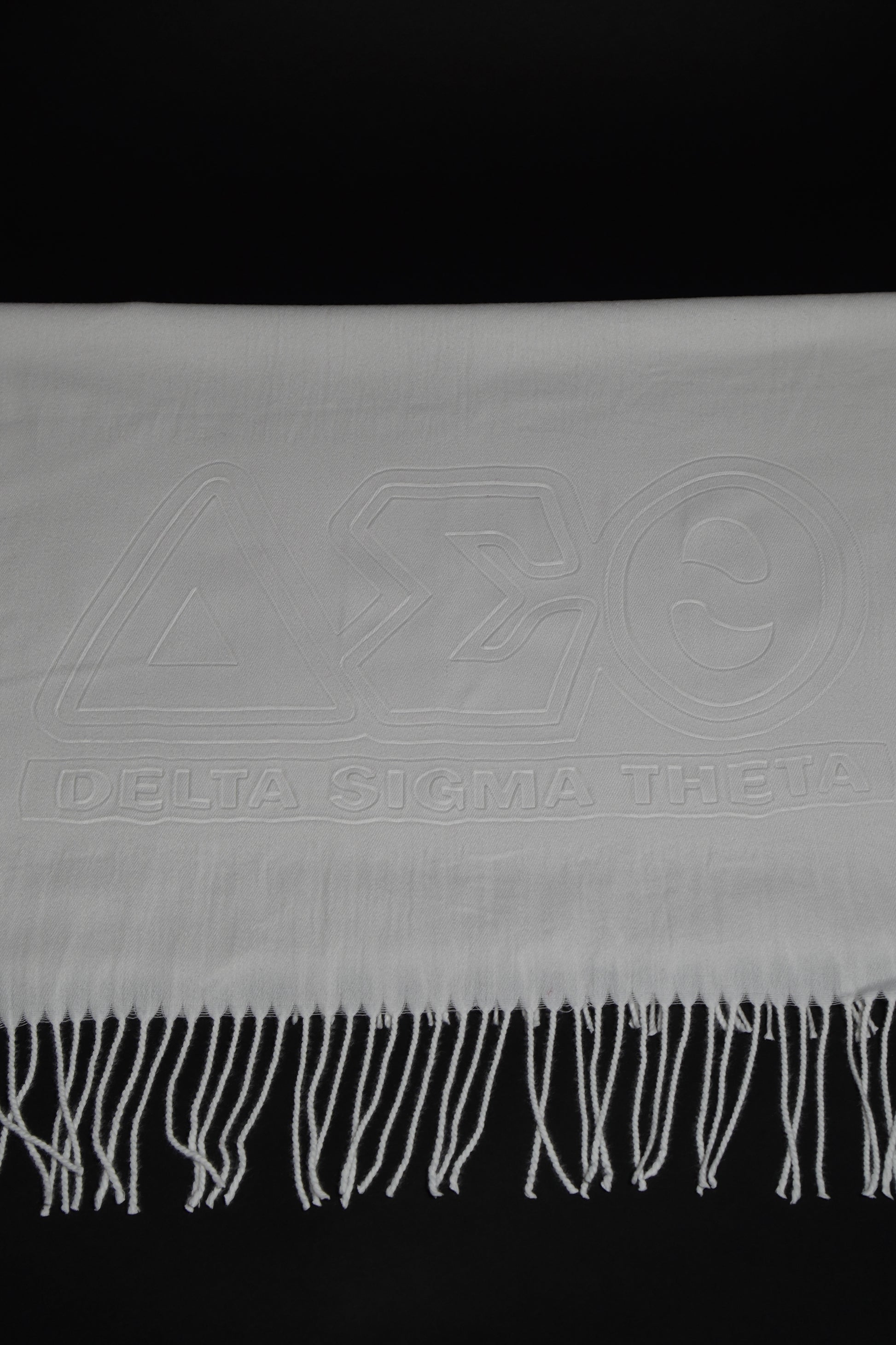 Classy, monochromatic scarf with our letters and "Delta Sigma Theta" beautifully woven into the scarf. Perfect for meetings or formal events!